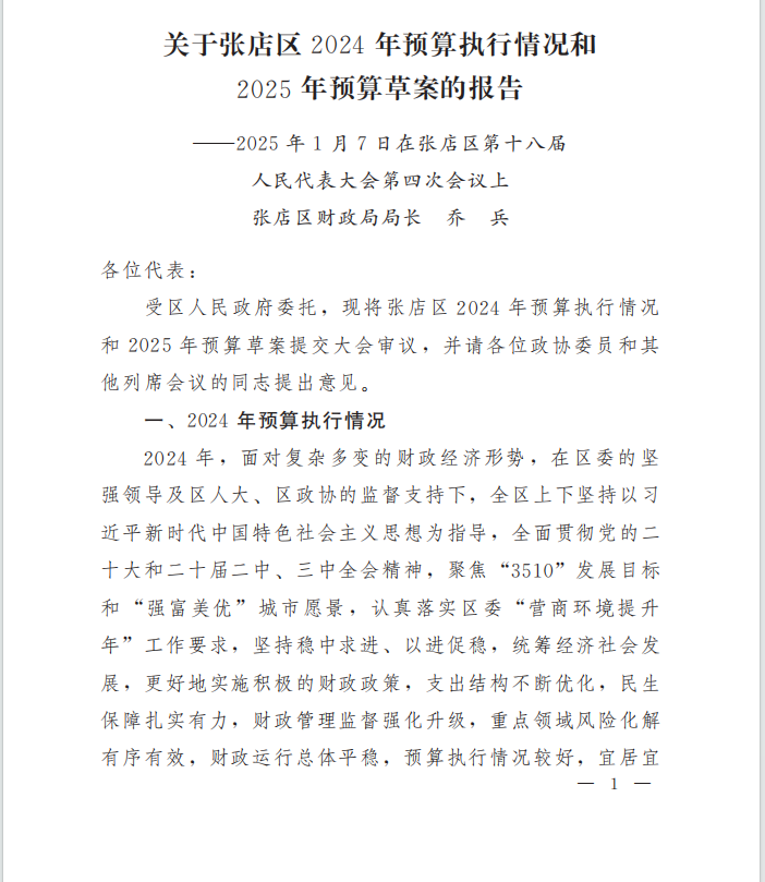 關(guān)于張店區(qū)2024年財(cái)政預(yù)算執(zhí)行情況和2025年財(cái)政預(yù)算草案的報(bào)告