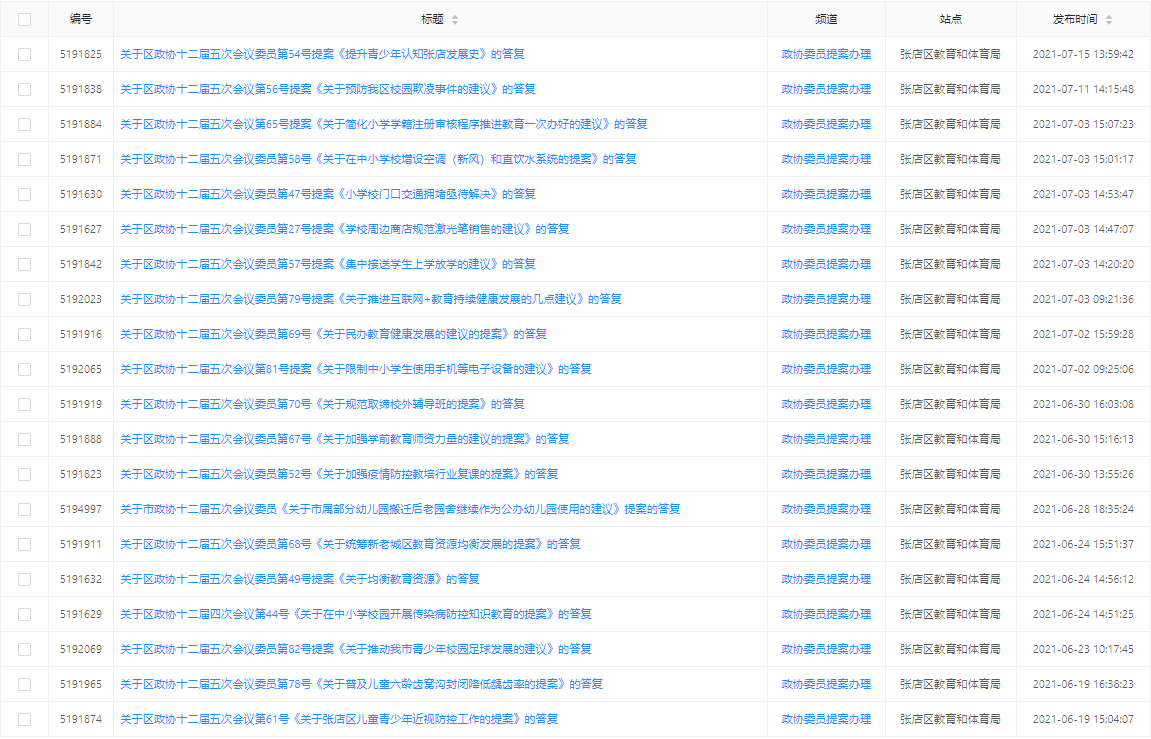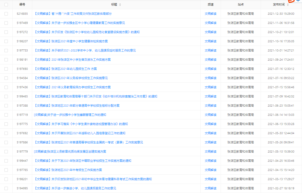 張店區(qū)教育和體育局2021年政府信息公開工作
