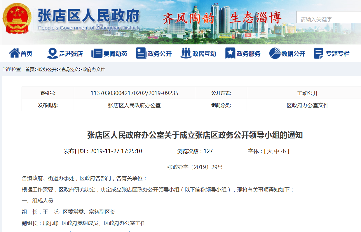 | 標題: | 張店區(qū)人民政府2019年政府信息公開工作年度報告 | ||