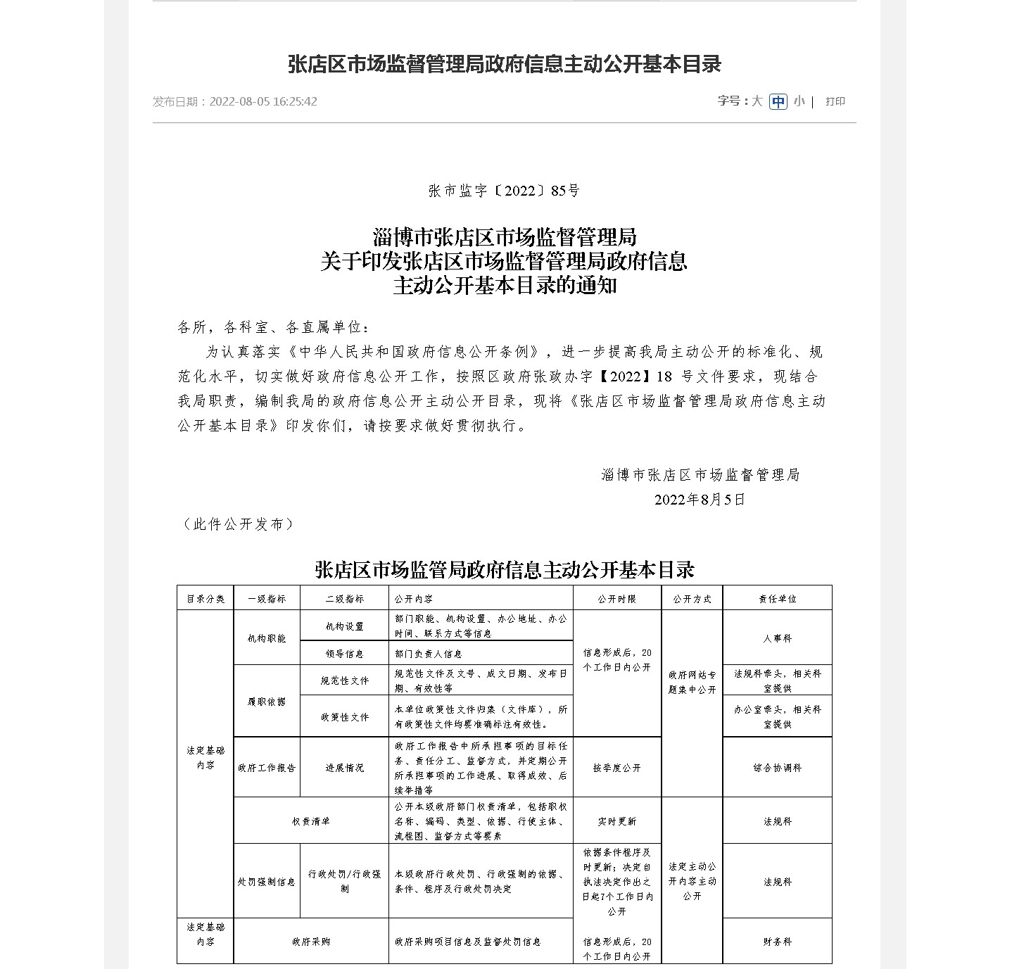 2022年,張店區(qū)市場(chǎng)監(jiān)管局按照國(guó)家關(guān)于政務(wù)公開工作決策部署和省、市相關(guān)要求,認(rèn)真貫徹《中華人民共和國(guó)政府信息公開條例》和《張店區(qū)人民政府辦公室關(guān)于印發(fā) 2022 年張店區(qū)政務(wù)公開工作方案的通知》工作要求,拓展政府信息公開的內(nèi)容,豐富政府信息公開的形式,提升了政府信息公開質(zhì)量和政務(wù)公開工作實(shí)效。