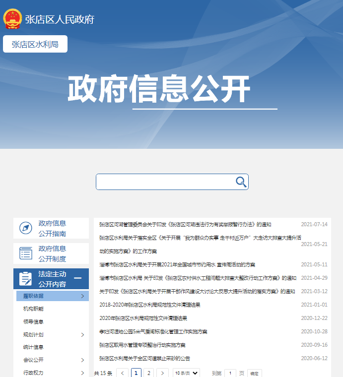 張店區(qū)水利局2021年政府信息公開工作