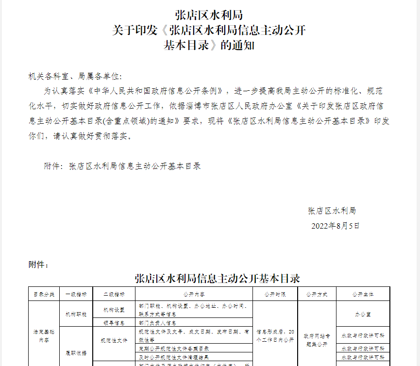 (三)政府信息管理。一是加強(qiáng)政府信息公開保密審查工作的制度化、常態(tài)化、規(guī)范化建設(shè),制定了《張店區(qū)水利局政府信息公開保密審查制度》,將政府信息公開保密審查與公文運(yùn)轉(zhuǎn)、信息發(fā)布結(jié)合起來,防止保密審查與政府信息公開工作脫節(jié)。二是在《張店區(qū)人民政府信息主動(dòng)公開目錄》的基礎(chǔ)上,結(jié)合本單位職能,印發(fā)了《張店區(qū)水利局信息主動(dòng)公開基本目錄》,以條目形式逐項(xiàng)細(xì)化分類,明確事項(xiàng)名稱、公開內(nèi)容和公開主體等,形成了公開事項(xiàng)清單,讓社會(huì)群眾對本單位公開事項(xiàng)一目了然。三是做好主動(dòng)公開內(nèi)容更新維護(hù),加強(qiáng)預(yù)警信息公開,2022年汛期共公開雨情信息18條,為市民生活生產(chǎn)、日常出行等提供決策依據(jù)。同時(shí)對本單位領(lǐng)導(dǎo)信息變動(dòng)、政策文件發(fā)布、行政執(zhí)法信息、部門會(huì)議等重要信息進(jìn)行了實(shí)時(shí)更新。四是創(chuàng)新政策解讀方式,采用一問一答的形式對《張店區(qū)農(nóng)業(yè)水價(jià)綜合改革獎(jiǎng)補(bǔ)辦法實(shí)施細(xì)則(試行)》進(jìn)行了政策解讀。